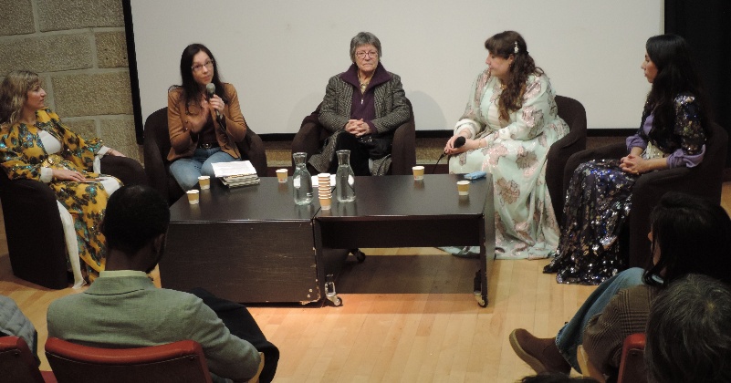 Tifenn Siret débute son intervention en langue bretonne tandis qu’à ses côtés les invitées de l’association kurde Kassed et leur interprète sont vêtues de somptueuses robes traditionnelles colorées, rehaussées de paillettes.